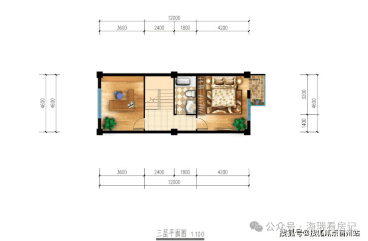 内部层高:一楼4.2米、二楼3.3米、三楼3.3米、阁楼3米.