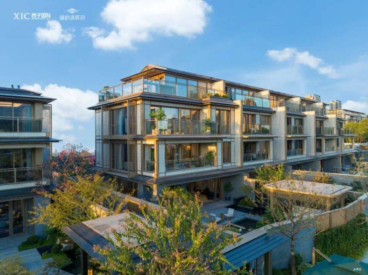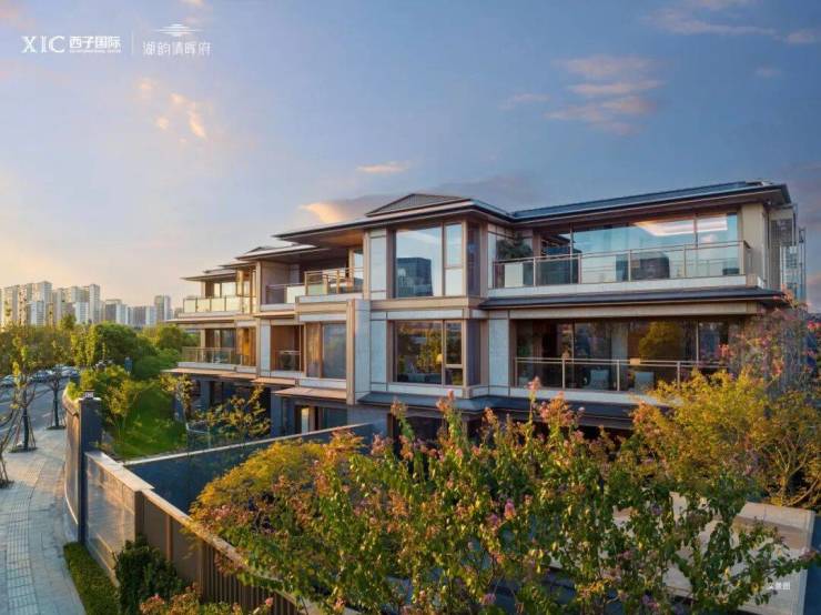 基于约1.1容积率的低密基因,遵循“南低北高、西低东高”建筑规划,创造性地采用“以湖为心、扇形铺展”的排布形式,规划3层合院、4层排屋、6层叠院,并以“L型半围合”排布,将5幢6层叠院沿城市道路布局,湖景资源最大化,打造「临湖而居,景城共生」的高端居住范式。