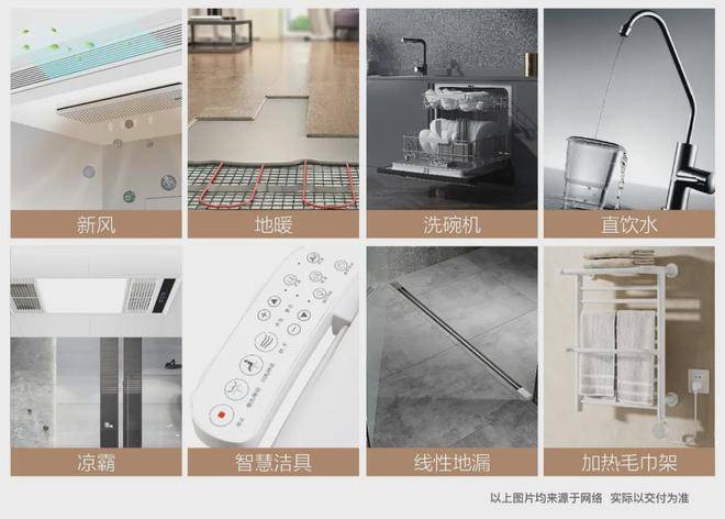 柔和的白色、米色与雅灰,是精装的主色调。配置方面大到地暖中央空调新风系统净水系统小到厨房的凉霸和洗碗机都一一配齐