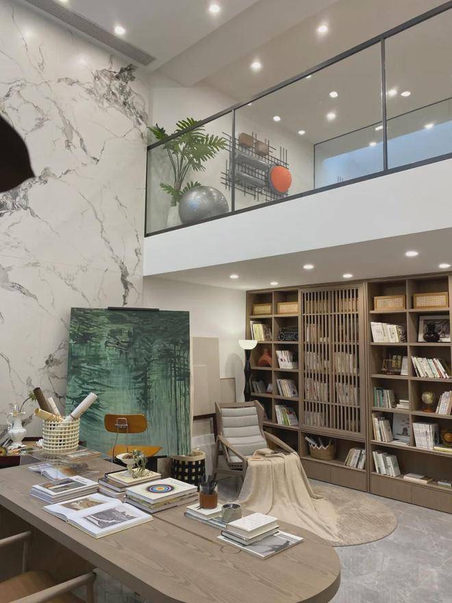 看一眼外立面,白色石材、香槟色的木纹铝板、大面积玻璃的拼接组合,怎么看都不像一个门槛只有300万+的低密叠墅。