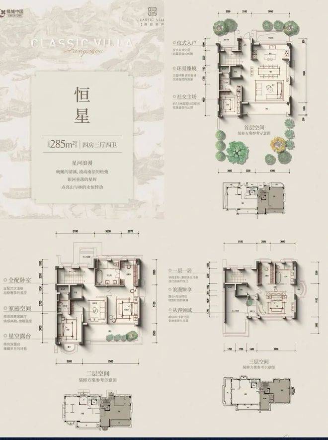 叠排产品遵循“现代形、东方意”内涵,低密产品,最主要追求的就是“有天有地,有私密感”,所以附加值的打造,变得尤其重要。所以,我们先讲的是附加值。建筑面积约235~300㎡四层庐系叠墅,