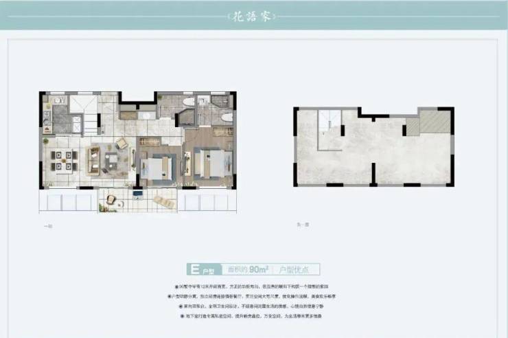 项目产品主要为建面约90-120㎡的叠墅,空间丰富,功能强大。户型优势主要为整体户型方正面进深设计合理,动静分离布局、室内面积利用率高,下叠带地下室且空间大,各种户型都为南向卧室,部分户型甚至拥有南向五开间的面宽尺度,上下2层的南向面宽大采光好。