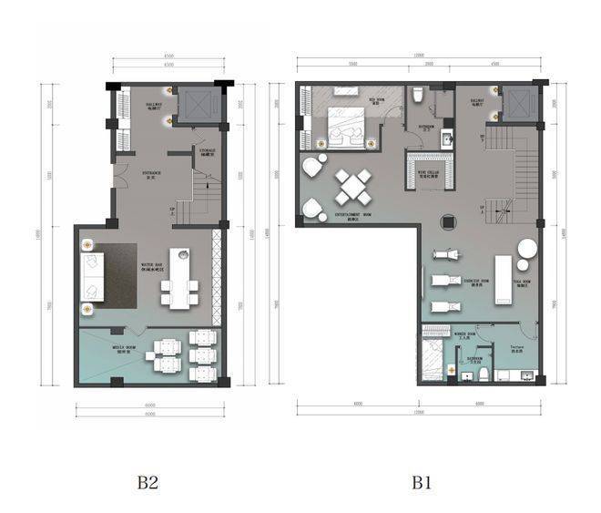 地下一层的“宴宾层”,雪茄吧、茶室、棋牌室……现极致奢华与舒适的生活体验;地下二层则是纯粹的“私享层”,主人可以定制自己的私属领域,享受专属于自己的时光。入户玄关、多功能影音室……更多可能性完全随主人兴趣自行定义。