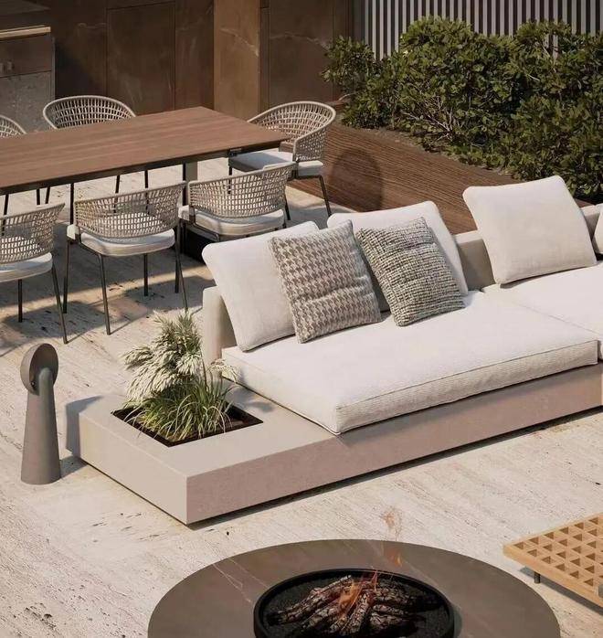 负一层整体空间的功能围绕着“放松”二字。影音室、棋牌区、红酒柜、健身区、瑜伽区,完美呈现出主人休闲娱乐场景。还可利用一层的采光井做出室外茶室的空间,让社交出现了一丝自然的场景。茶室与绿植景观融为一体,让生活充满自然的味道。