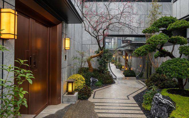 天朗气清时,水墨色与美国白金石的金绿辉映,交织出一种奢华但又深邃的沉静感。保证绝对的隐私性和生活品味。台阶、格栏、水系、亭台、树柏,层层递进,涵雲軒在追求美学的同时,做出了真正意义上的“隐奢”入口。外界无法一眼窥尽全貌,更添高门大户之神秘感。