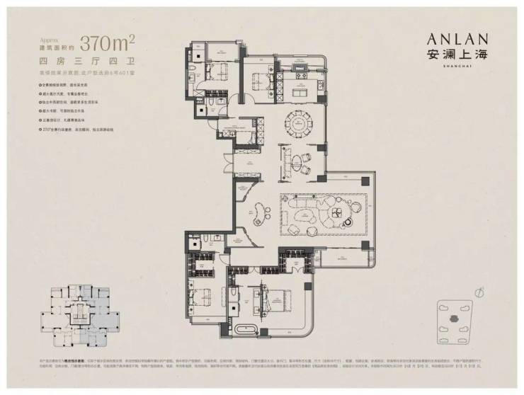 安澜上海携手gad、CCD郑中设计、梁志天设计集团、无间设计、LSD、召禾、承迹、翊象设计等近20家国内外一线设计机构共同参与打造,是上海首个采用“全地块4米以上整层抬板设计”的住宅。