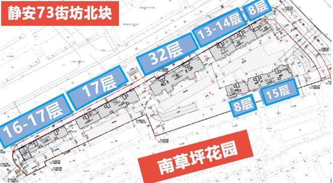 73街坊共分为南北两块,是老静安为数不多的纯住宅地块,北地块的高层住宅部分共将新建5栋8层至32层的住宅楼,总住宅开发体量共约7.25万㎡,总套数仅有468套。