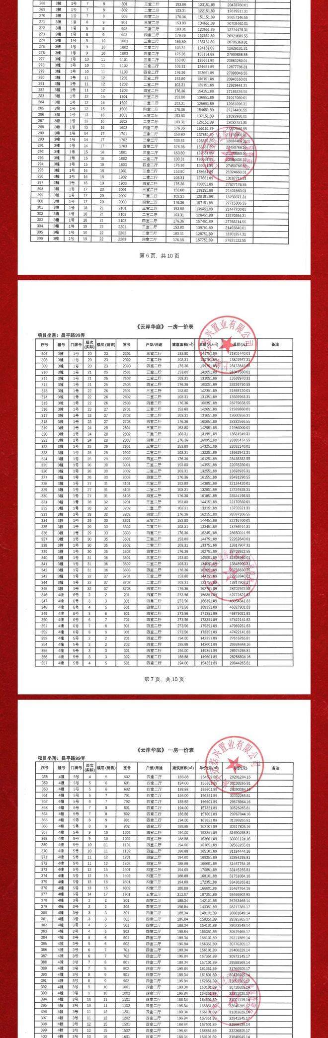 一房一价表如下
