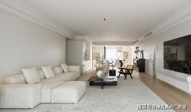 留白的空间配以装饰画与艺术品,丰富了空间的想象力和延伸感。客厅串联起节奏分明的生活动线,自然质感的选材蕴含着深层次的生命力。