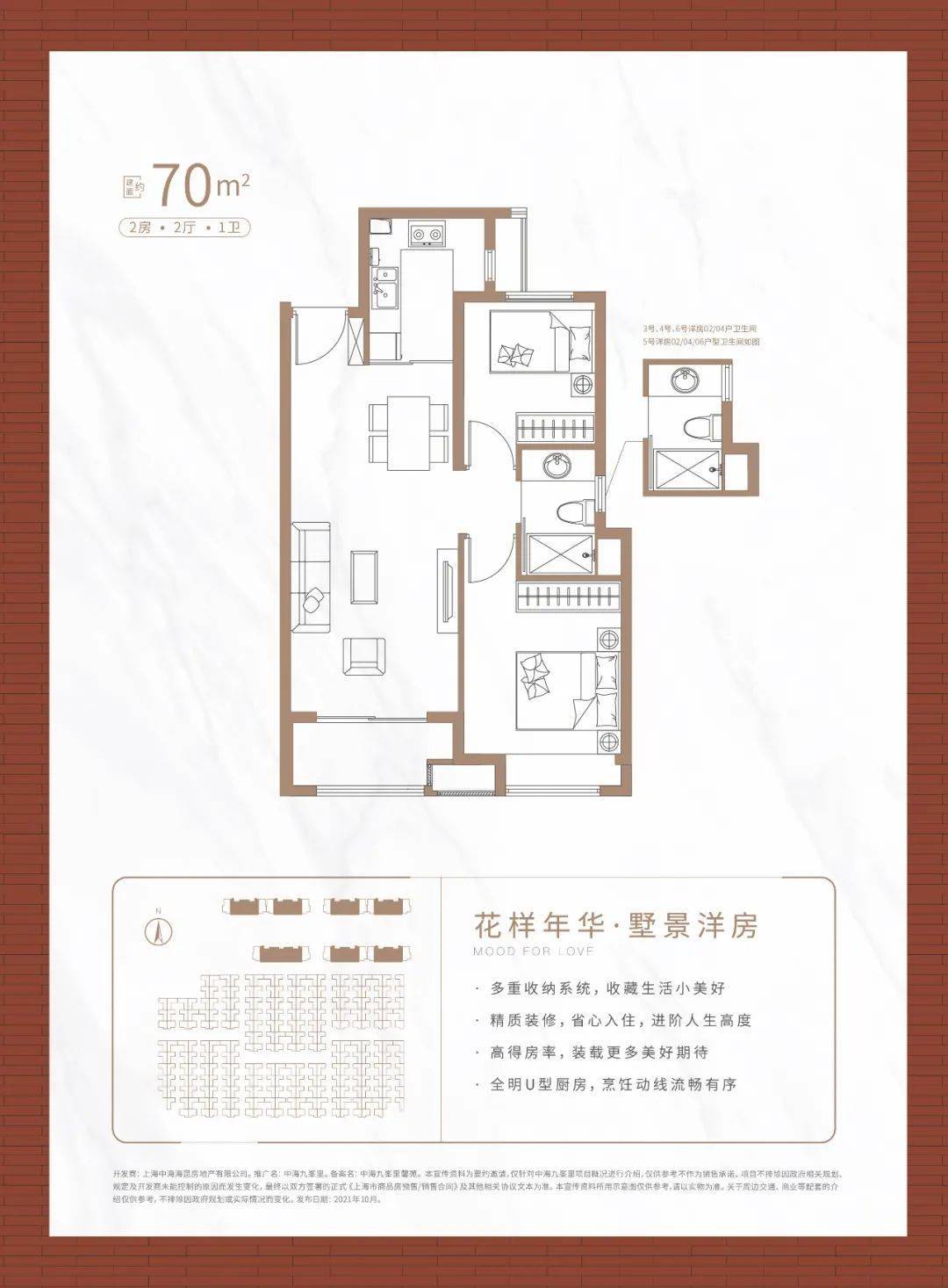 放眼整个上海越来越多的小高层产品自称为洋房,但无论是得房率、私密性还是舒适性,6层以下的洋房显然是更为优越的存在。「中海阅麓山」建面约70㎡的真洋房,不仅价格诱人,户型更是精心设计。