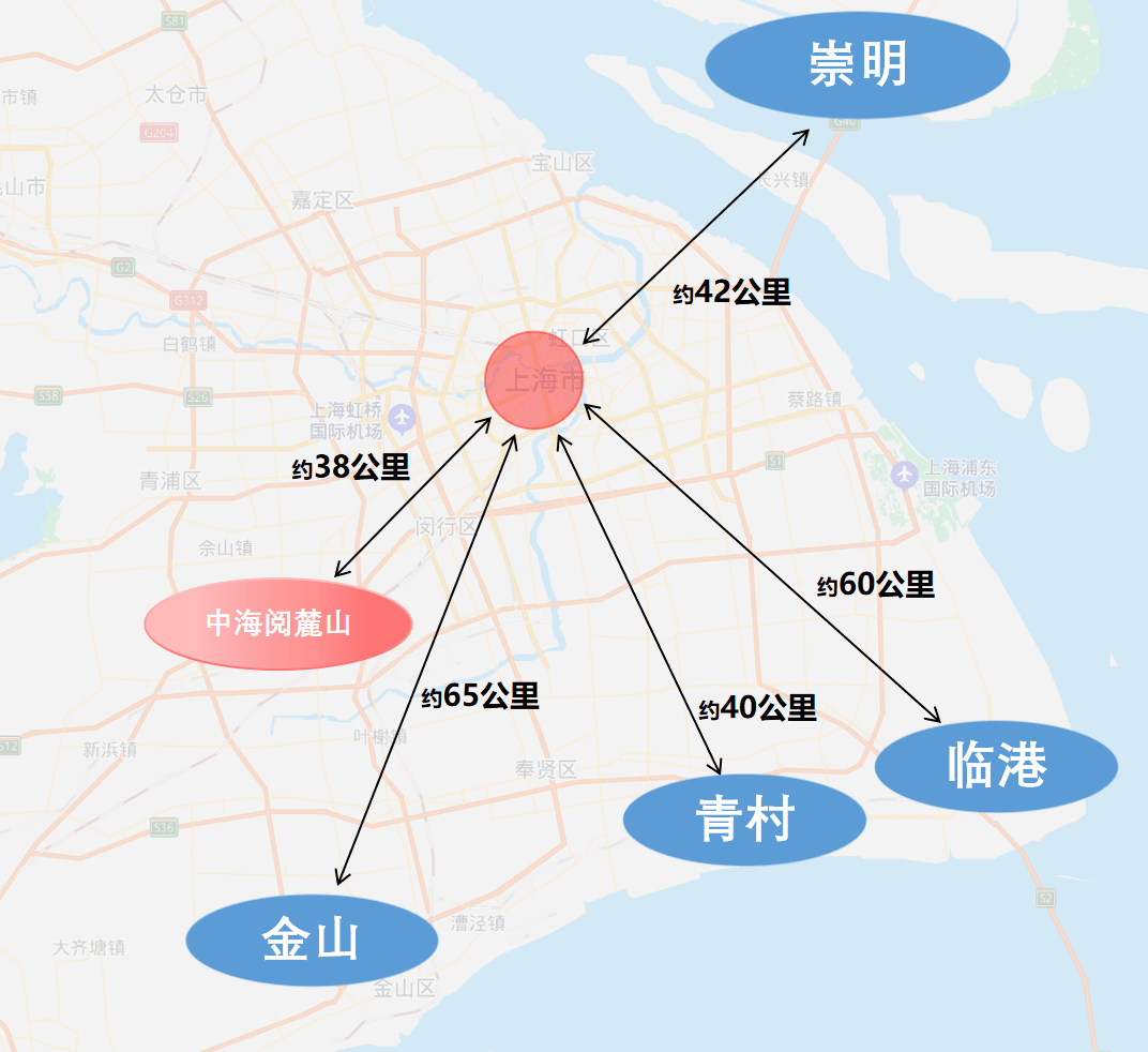 不仅如此,这些本就为数不多的项目距离市中心基本上在直线距离约40-60公里左右。(下图中距离为百度地图测距)