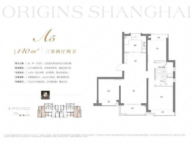 建面约140m²3房2厅2卫:格局上做到三开间朝南+南北通透,让业主起居之间沐浴更多阳光。