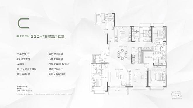 更以缦品牌独特产品设计与美学品位、无边际服务体系、约80%得房率和主力约3.3米层高等硬核产品力,打动上海高净值客户。
