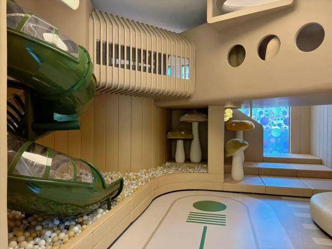 架空层则配备了四大功能主题区——浮岛会客厅、24小时书吧、健身房、童玩区,综合面积接近500平,业主人均使用面积约4.5方,超过市面上的多数项目。