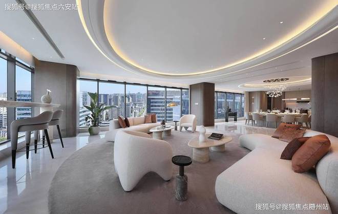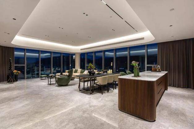 定位:板块内唯一在售精装大平层,户均310㎡,一梯一户设计,层高3.85米,采用玻璃幕墙外立面,270°环幕视野。