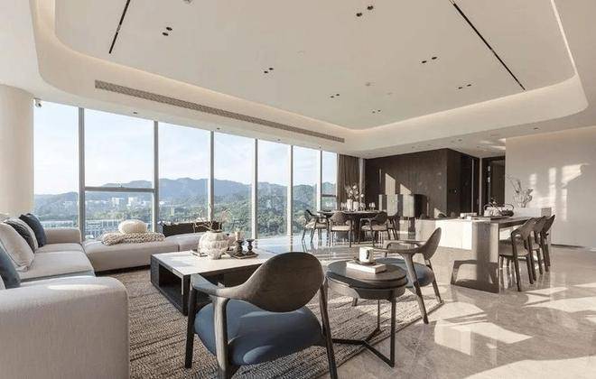 户型特点:主力户型为建面约310㎡山景大平层,客厅面积约70-75㎡,主卧约55㎡,配备全屋国际一线品牌精装(如博世厨电、杜拉维特卫浴)。