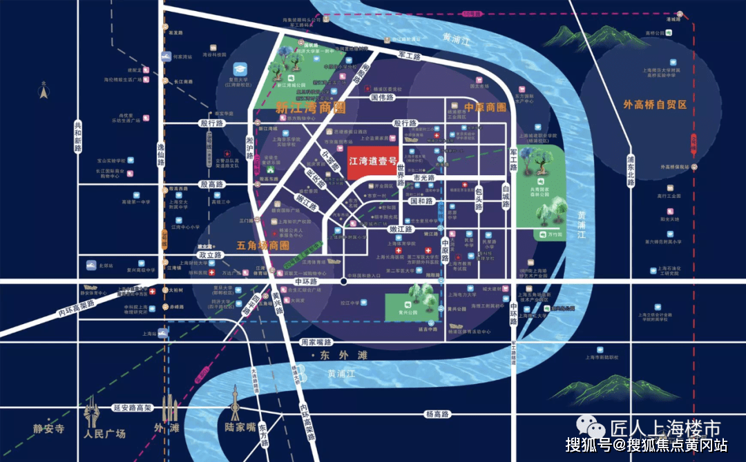 项目毗邻上海北部商业中心五角场,生活上的便利性毋庸置疑,最重要的项目所处位置是第三代国际化社区-新江湾。新江湾城国际社区位于上海的北部,是按照联合国定义的城市5.0规划设计。这里有上海市中心较大的湿地公园,同时也是是上海高校氛围最浓郁(复旦、同济、上财及各重点高级中学),又紧邻北上海城市中心五角场。