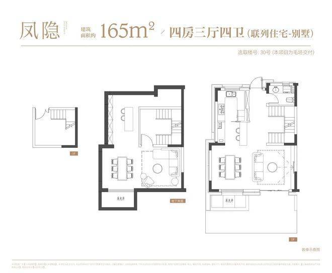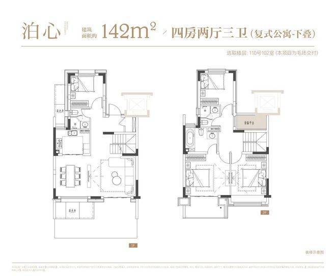 叠墅:叠墅一共四层,分为上/下叠,上叠建筑面积约139㎡,下叠建筑面积约142㎡。