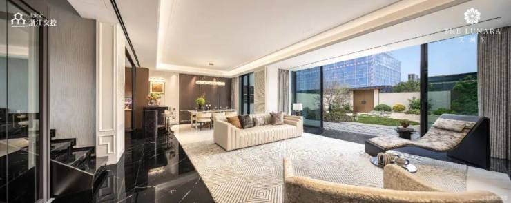 一进“金玉翠屏”:以环岛落客庭院、金檐华盖定调。范思哲黑、Prada绿等奢石为衬,黑松静立,叠水潺潺,归家的仪式感自此开启。