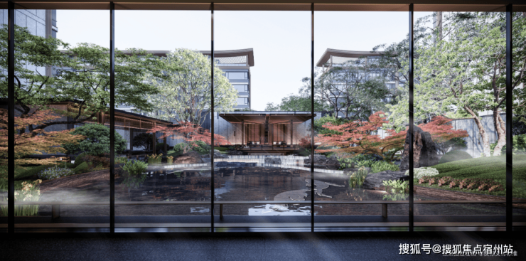 绕过清逸不失威仪的东方门庭,迈入中式传统围水庭院,充满美好寓意的“华纹”设计,绘就一个向心聚拢的礼序庭院。
