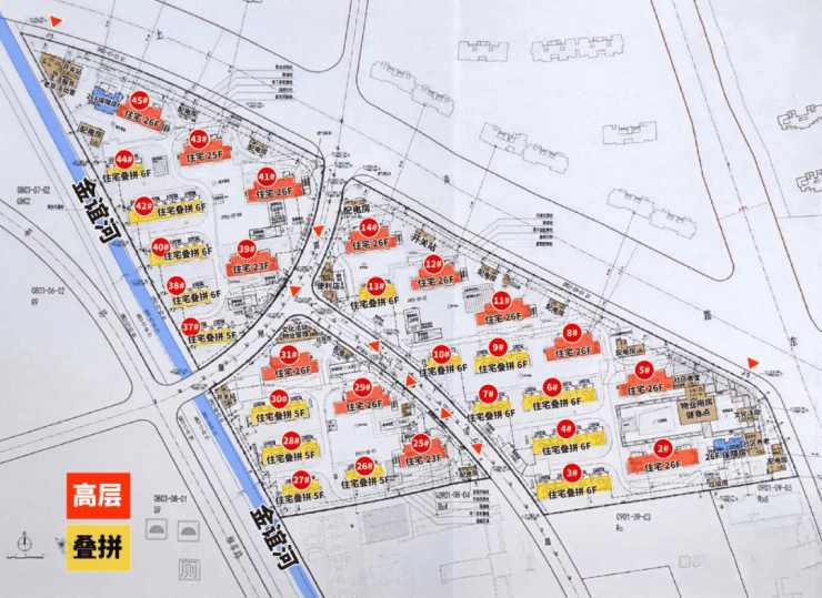 08-03地块:容积率2.2,拟建3栋23-26F高层住宅、4栋5F多层住宅以及若干社区配套用房;Block 07-04: Floor area ratio is 2.2. It plans to build 1 26-story affordable housing building, 3 23-26 story high-rise residential buildings, 5 5-6 story multi-story residential buildings, and several community support facilities;