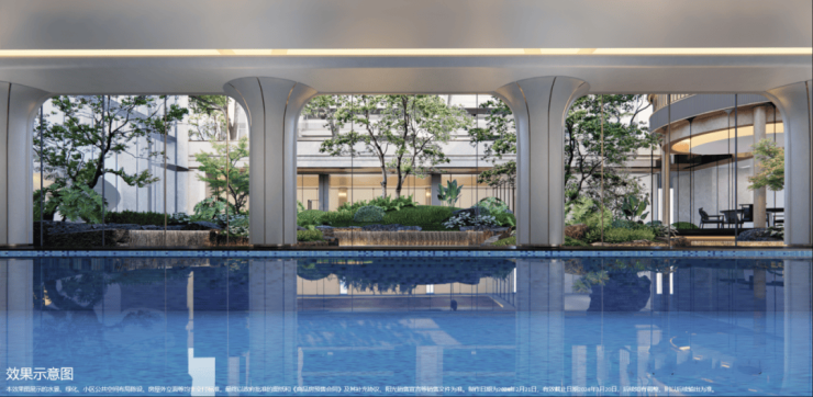 项目标配下沉式庭院会所和恒温泳池,满足业主们的会客、健身、娱乐需求,同时利用建筑内部的架空区域,以全龄社区为出发点,打造容纳多元生活的社区中心。