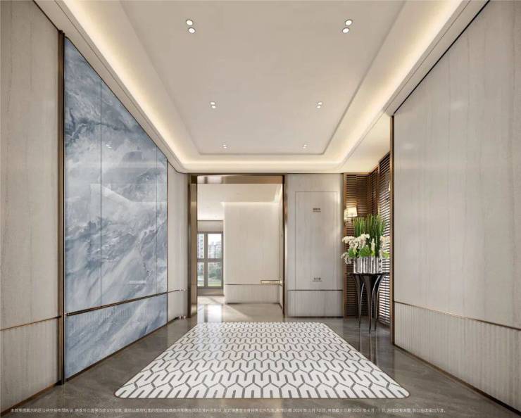 地上精装大堂的设计同样出彩,地面的石材拼花造型与墙面的石材背景相得益彰,将静奢海派的艺术风格展现得淋漓尽致,为业主带来无与伦比的视觉盛宴。