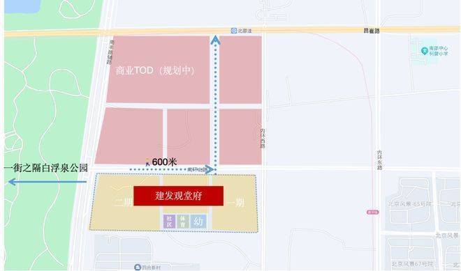 从板块来看,观堂府属于昌平新城东区。以滨河森林公园为界,西边是老城,东边是新城。