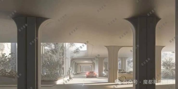 项目上层则为悬浮的“浮岛花园”住宅区,住宅组团如“浮岛花园”悬浮于城市之上,实现真正意义上的人车分流与立体绿化。