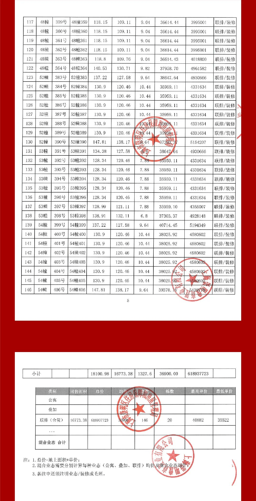 【一房一价表】