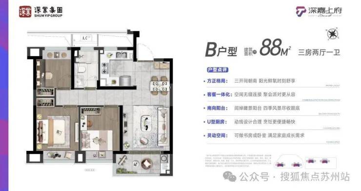 深嘉上府融合住宅、商业办公于一体片区唯一综合体,以多元互动缤纷引力商业、幻彩乐聚商业街区、绿意渗透花园办公场所、健康活力社区,四重活力场景构建城市未来生活客厅,无论是购物、娱乐、办公,还是休闲健身,都能在举步之间轻松实现。