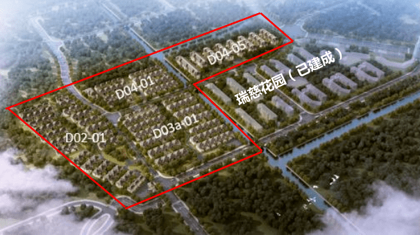 项目用地 92535 ㎡,由瑞胡路、颐湖路及横一河分割为 D02-01、D03a-01、D04-01 及 D04-05 四个地块,总建筑面积 155455.34 ㎡,容积率0.86。