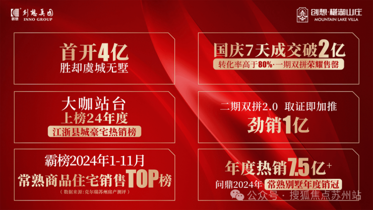 去年,创想集团的另一个项目--创想·樾湖山庄,实现了首开4亿,国庆2亿、全年热销7.5亿+的数据,直接问鼎同类型产品;