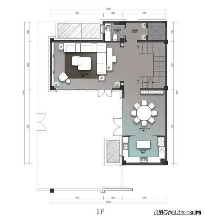 一层生活区围绕着客厅和餐厨功能打造。直面(建筑面积约91㎡)花园的整扇落地折叠玻璃窗,可自由打开,自在进出,达到与自然零阻隔。夏日乘凉喝茶,秋