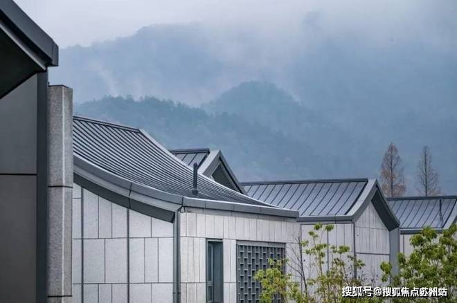 涵云轩的建筑在尽可能范围内,吸收江南院落的坡屋顶、白墙灰瓦、山水景墙等中式风骨,放眼望去,见阳光洒下、韵律辉映,将周围青山绿水映衬出更浓郁的自然之色,绿与白,深浅相照,自然与建筑,完美交融。