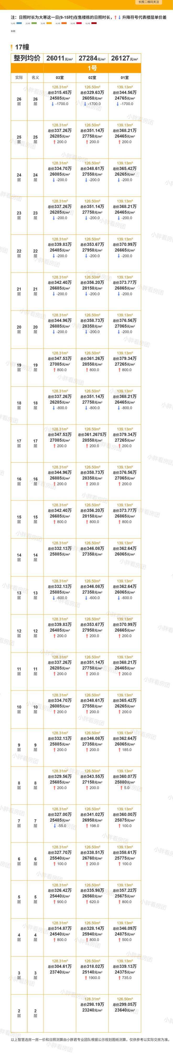 11月13日下午,项目惊喜公示第十三张预售证,加推17#,共74套房源,面积125-128-139方,均价约2.647万/平。