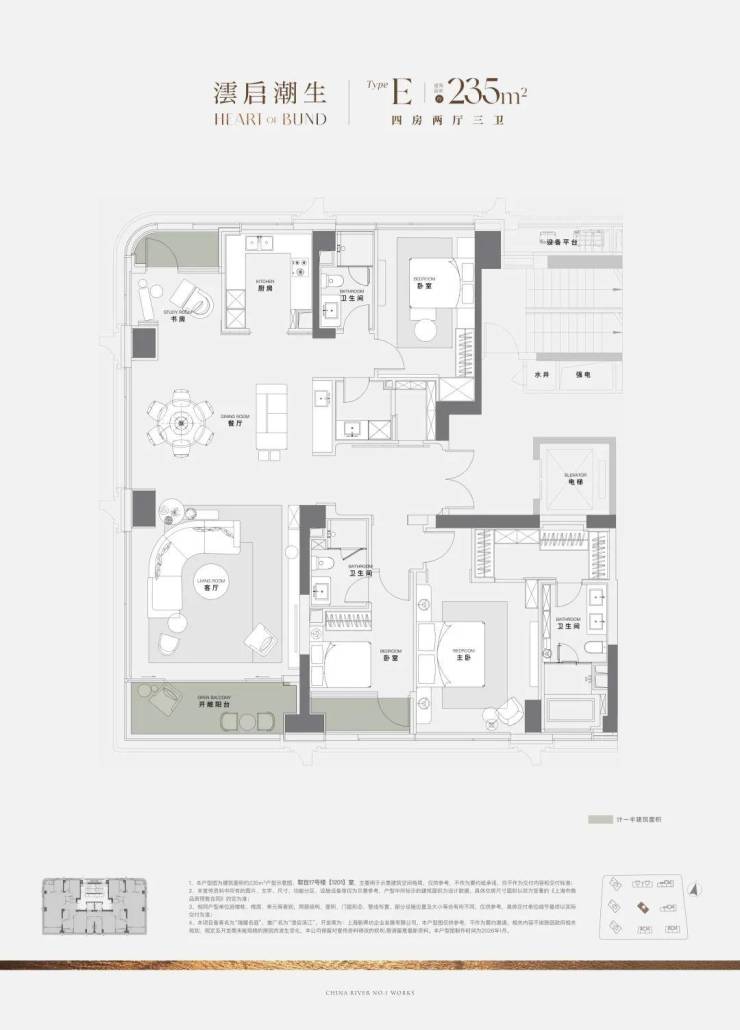 项目185㎡户型作为滨江园境主座,堪称上海滨江之上的园境栖居典范。