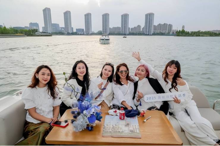 此外,结合“游艇入户”的湖居特色,嘉宾们更是登上游艇,实地感受上海唯一拥有私人码头的别墅生活场景。项目不仅坐拥紫竹国家高新区的产业资源、水利风景区的生态优势,亦毗邻高校科研与顶尖住宅圈层,构建起“产业高地+生态高地+教育高地+人居高地”的全维度融合,为高净值人群提供了真正的未来人居阵。