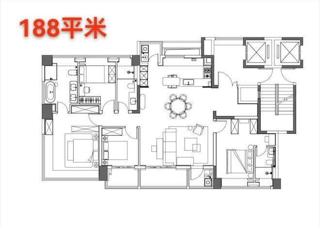 其三,LDKG一体化设计,将客厅、餐厅、厨房与阳台融合,形成约34㎡的超大会客厅,6.8米南向大横厅可灵活改造X空间(改造后),满足家庭影院、亲子互动等多元需求;