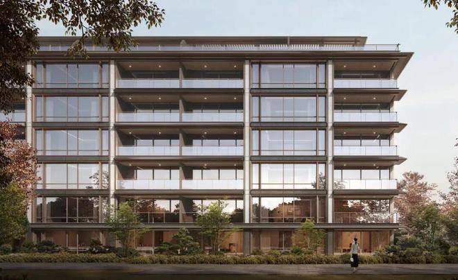 洋房立面竖向用天然石材、横向配铝板线条,刚柔并济如 “高级材料艺术品”,大幅提升窗墙比例,通透灵动且识别记忆点强。