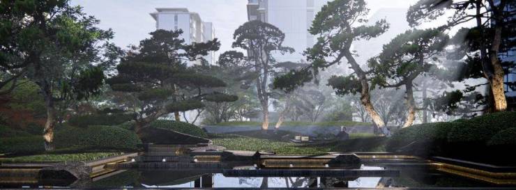 每一处水流皆随动线自然铺展,水声潺潺中,归家的尊崇感与仪式感悄然递进,尽显高端社区的雅致底蕴。