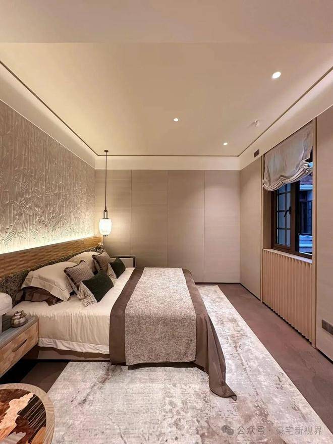 收纳上采用整面隐形通顶衣柜搭配内嵌开放壁龛,极简整洁且储物充足;软装精简克制,圆润家具与艺术陈设错落排布,兼顾睡眠、休闲等多重功能,同时衔接户外窗景视野,在私密空间里,打造出兼具高级质感与治愈温度的休憩居所。