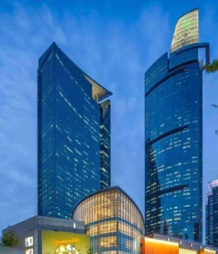 建筑美学:外立面灵感源自武康大楼曲面弧形,采用经典三段式比例,搭配大面玻璃与古铜棕铝板,融合海派文化与现代时尚。