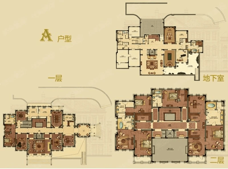 2040.34㎡(地下室700.64㎡),得名于都铎王朝,彼时大型宗教建筑活动歇业,新贵族舒适府邸建筑大兴。该风格融合哥特式与文艺复兴风格两代精髓应运而生。该户型建筑气质一脉相承,纯正英伦风血统,温文尔雅,贵气逼人,世代尊宠集于一身。