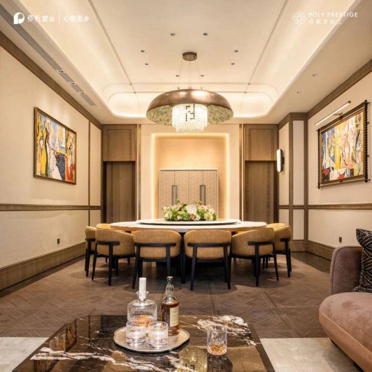 公区:保利顶豪精装双入户大堂、全冠移植立体滨江度假园林、风雨连廊、架空层泛会所、保利 24 小时一对一专属管家服务