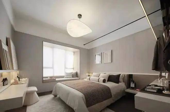超大主卧设计,不仅配置独立卫浴、大飘窗,更预留了衣帽间的储藏空间。