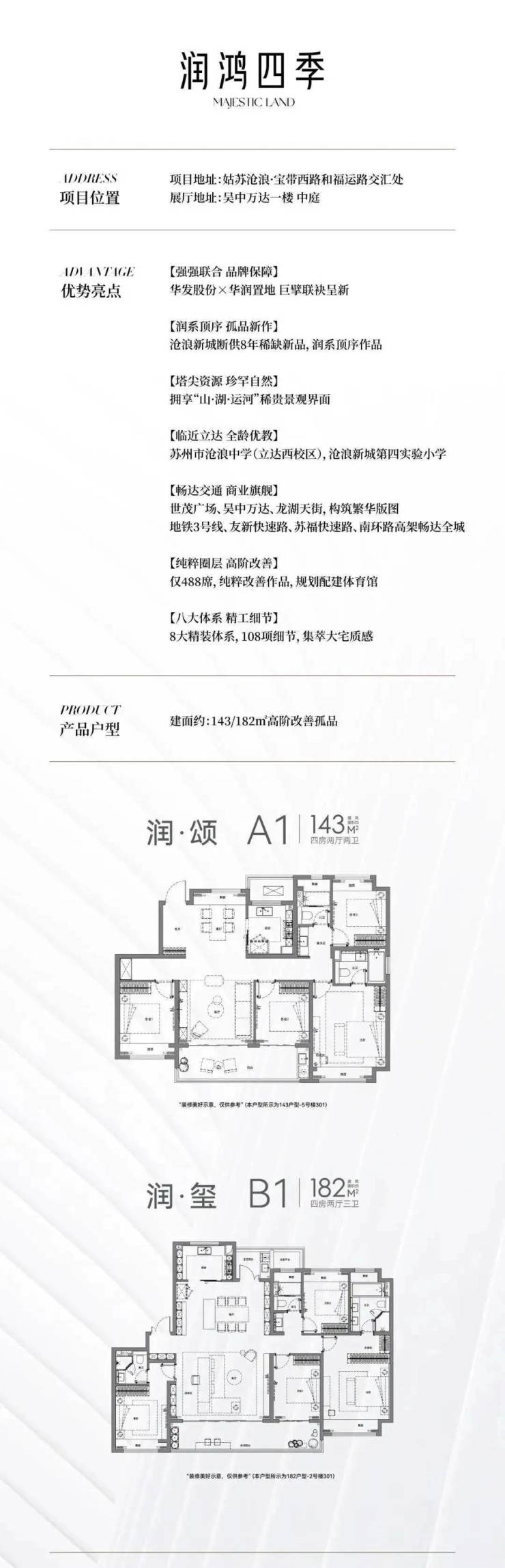 润鸿四季,建面约143m/182m高阶改善孤品,