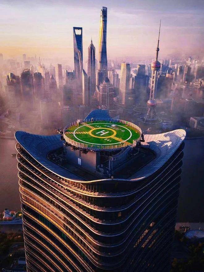 项目南边的楼栋顶部设计了一座上海唯壹的住宅停机坪,太过于豪横了。