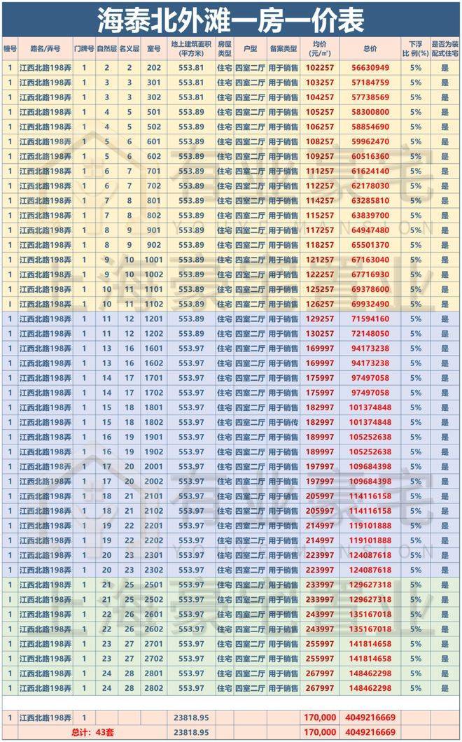 Contact the official salesperson to obtain the latest one-room-one-price list!