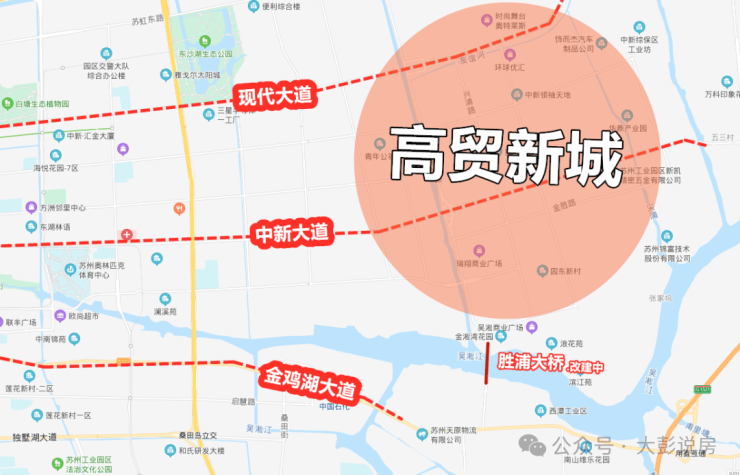 苏州未来城市发展总体布局“一核四城”,北部相城高铁新城,南部吴中吴江太湖新城,西部新区太湖科学城,东部园区高贸新城,高贸新城起步最晚,潜力最大,拥有园区核心资源加持,未来可期。